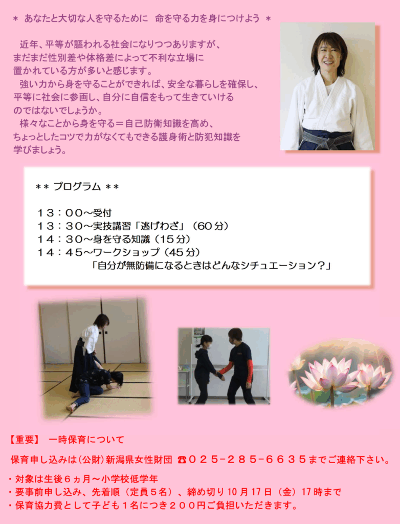 R7年度新潟県女性財団 団体支援事業【護身術‟逃げわざ”】参加申込書